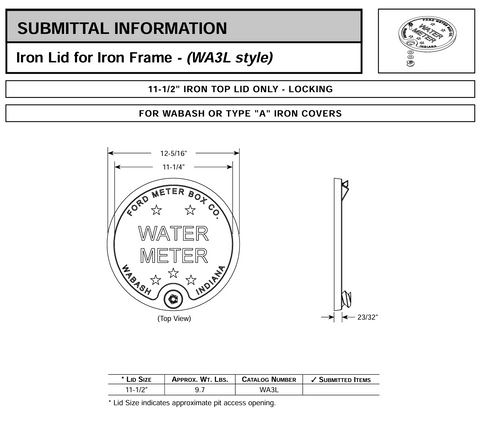 Ford Meter Box Type A 11-1/2" Solid Cast Iron Locking meter box Lid #WA3L